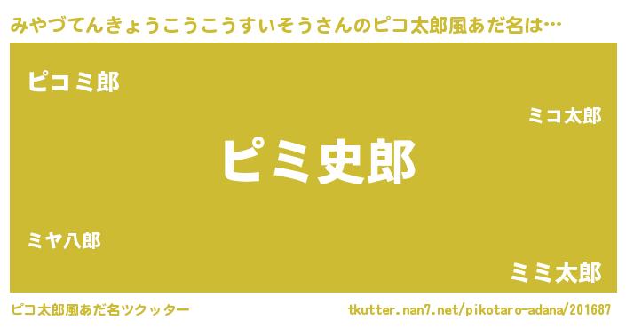 | 男性向けラノベタイトル風あだ名 | 『みやづてんきょうこうこうすいそうに滅ぼされるだけの簡単なお仕事です』 |