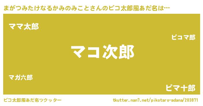| ヒーロー風カッコイイあだ名 | 『スーパーマガツミタケナルカミノミコト』 |