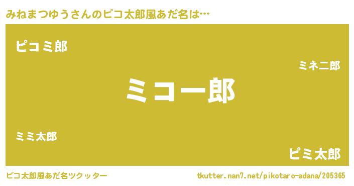 | 男性向けラノベタイトル風あだ名 | 『みねまつゆうの憂鬱』 |