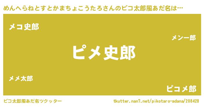 | 欧米人風あだ名 | 『ダレノガレめんへらねとすとかまちょこうたろ』 |