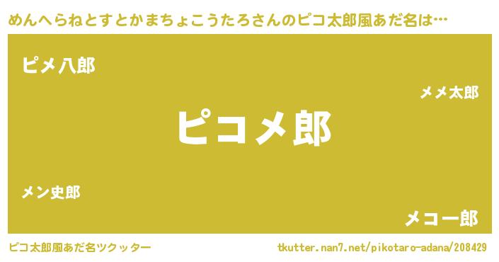 | ヘコむあだ名 | 『めんへらねとすとかまちょこうたろ(遠い目)』 |