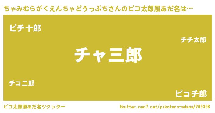 | 男性向けラノベタイトル風あだ名 | 『この素晴らしい世界にちゃみむらがくえんちゃどうっぶちを!』 |