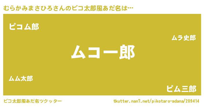 | 男性向けラノベタイトル風あだ名 | 『むらかみまさひろの憂鬱』 |