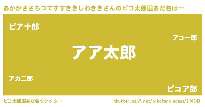 | 意味不明あだ名 | 『住所不定無職あかかささちつてすすききしわきき(6歳)』 |