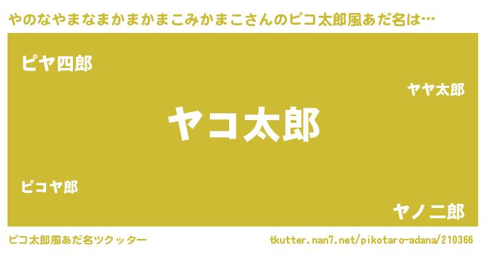 | 男性向けラノベタイトル風あだ名 | 『ヤノナヤマナマカマカマコミカマコアートオンライン』 |