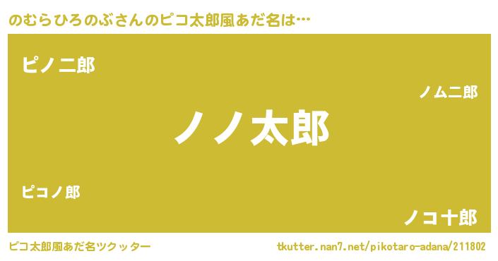 | 男性向けラノベタイトル風あだ名 | 『おまえをオタクにしてやるから、俺をのむらひろのぶにしてくれ! 』 |