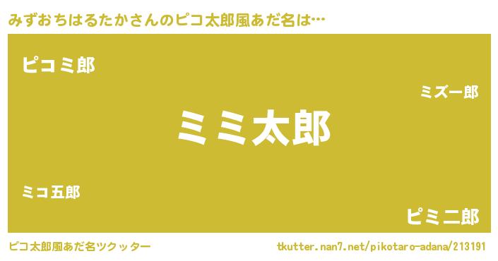 | 男性向けラノベタイトル風あだ名 | 『Re:みずおちはるたかから始める異世界生活』 |