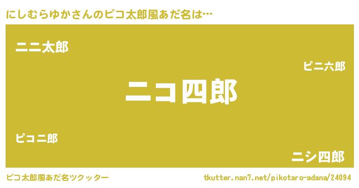 | 男性向けラノベタイトル風あだ名 | 『にしむらゆかの憂鬱』 |