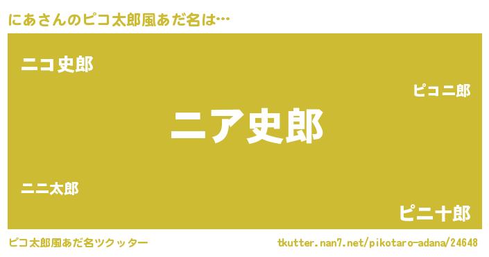 | 男性向けラノベタイトル風あだ名 | 『この素晴らしい世界ににあを!』 |