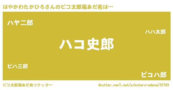 | 男性向けラノベタイトル風あだ名 | 『はやかわたかひろの憂鬱』 |