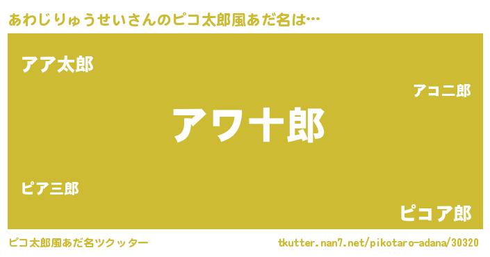 | 女子向けラノベタイトル風あだ名 | 『あわじりゅうせいは平凡を望む』 |