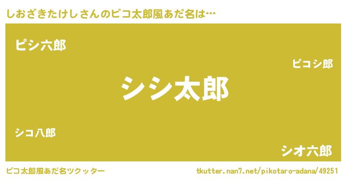 | 女子向けラノベタイトル風あだ名 | 『しおざきたけし恋絵巻』 |
