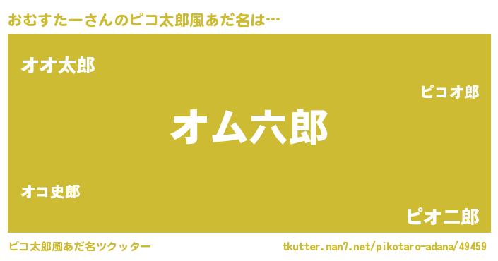 | 男性向けラノベタイトル風あだ名 | 『転生したらおむすたーだった件』 |