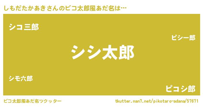 | ヘコむあだ名 | 『しもっふぃ~』『しもだたかあき(笑)』 |