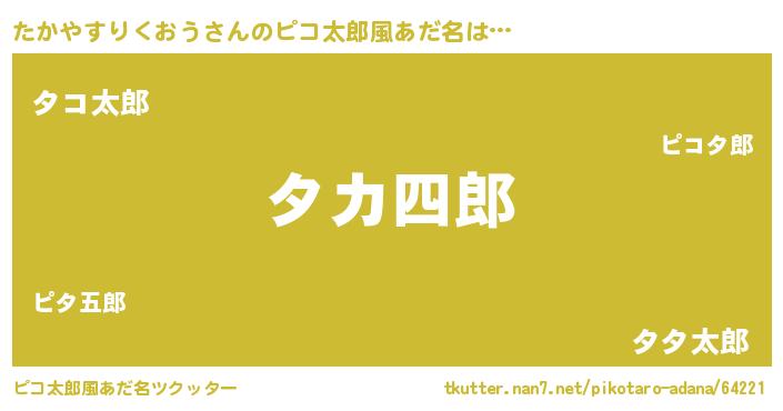 | 男性向けラノベタイトル風あだ名 | 『たかやすりくおうの嫁は女の子じゃないと思った?』 |