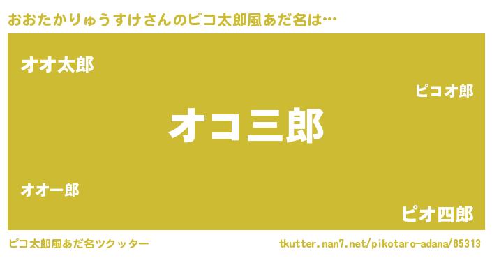 | 男性向けラノベタイトル風あだ名 | 『魔弾の王とおおたかりゅうすけ』 |