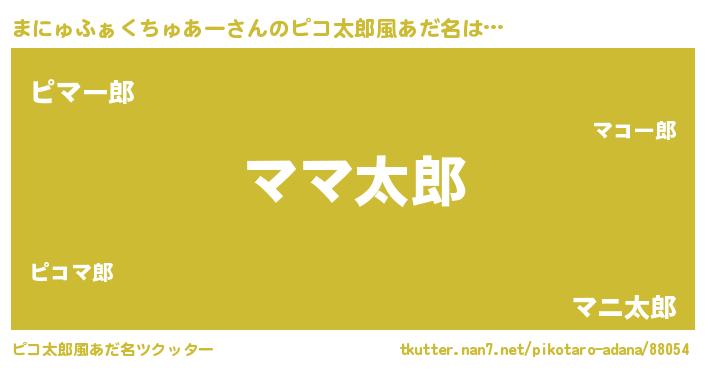 | 男性向けラノベタイトル風あだ名 | 『おまえをオタクにしてやるから、俺をまにゅふぁくちゅあーにしてくれ! 』 |