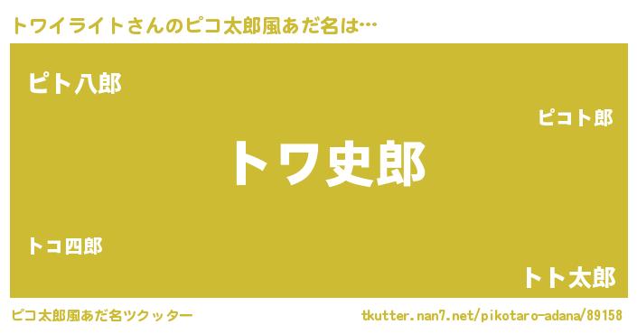 | ポケモン風あだ名 | 『トワゴンZ』『ヒトワイライト』 |
