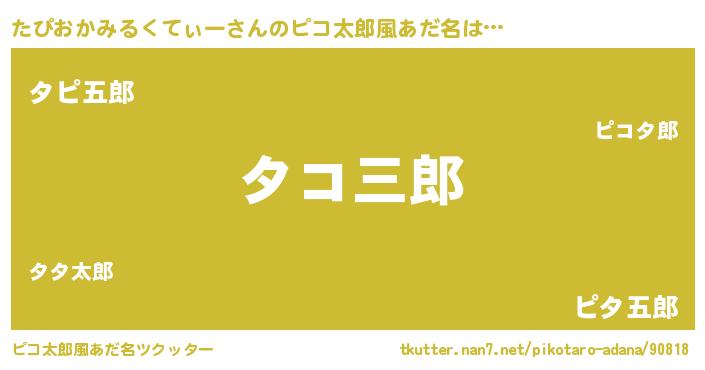 | 男性向けラノベタイトル風あだ名 | 『うちのたぴおかみるくてぃーが世界を掌握している!』 |