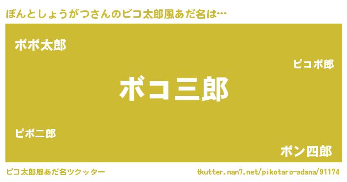 | 男性向けラノベタイトル風あだ名 | 『ぼんとしょうがつの憂鬱』 |