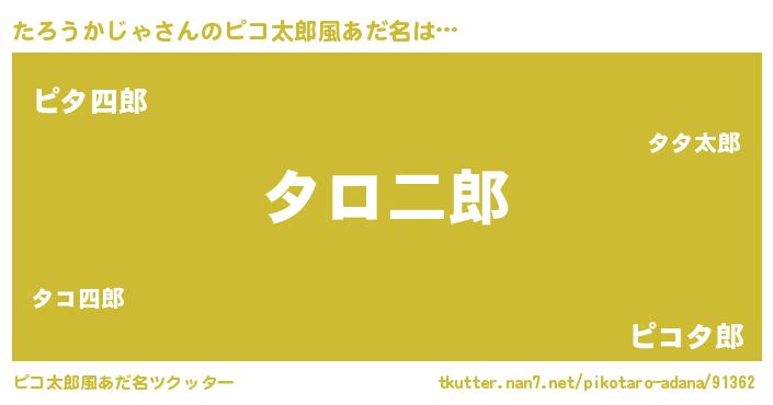 | 男性向けラノベタイトル風あだ名 | 『たろうかじゃの嫁は女の子じゃないと思った?』 |