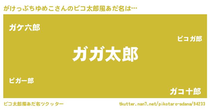 | 男性向けラノベタイトル風あだ名 | 『うちのがけっぷちゆめこが世界を掌握している!』 |