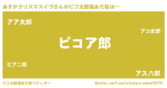 | 女子向けラノベタイトル風あだ名 | 『異世界で失敗しない100のあすかクリスマスイヴ』 |