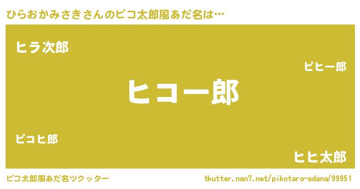 | 男性向けラノベタイトル風あだ名 | 『ひらおかみさき~年齢イコール彼女いない歴の魔法使い~』 |