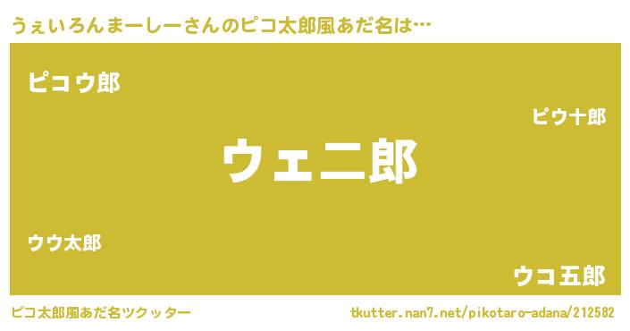 | 意味不明あだ名 | 『住所不定無職うぇいろんまーしー(43歳)』 |