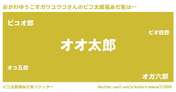 | 男性向けラノベタイトル風あだ名 | 『おまえをオタクにしてやるから、俺をおがわゆうこオガワユウコにしてくれ! 』 |