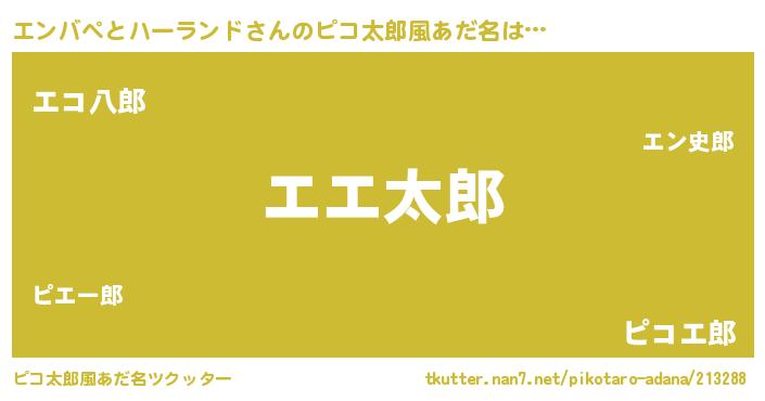 | 女子向けラノベタイトル風あだ名 | 『エンバペとハーランド恋絵巻』 |