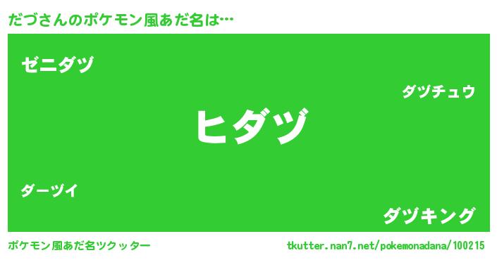 | 女子向けラノベタイトル風あだ名 | 『だづの卵を拾いまして』 |