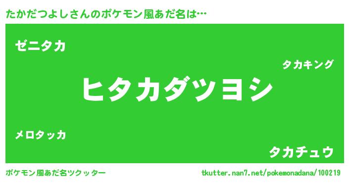 | 女子向けラノベタイトル風あだ名 | 『たかだつよしの卵を拾いまして』 |