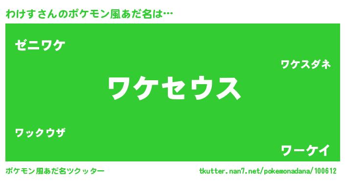 | ファンタジー風あだ名 | 『ゼワケトゥ』『ワケディッシュ』 |