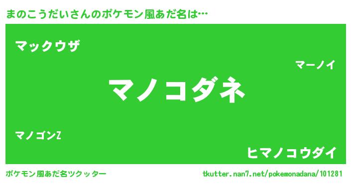 | 女子向けラノベタイトル風あだ名 | 『まのこうだいの雑貨屋さん』 |