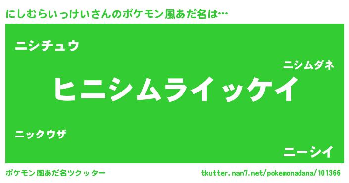 | 意味不明あだ名 | 『とにかく怪しいにしむらいっけい』 |