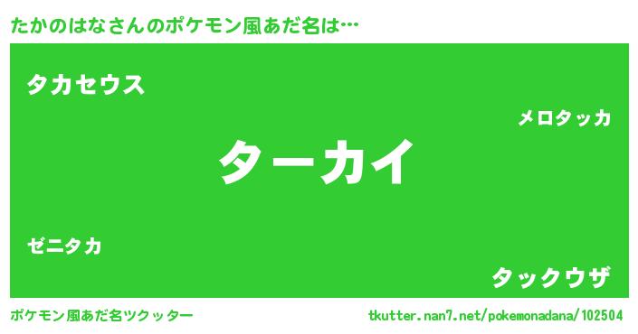 | ヒーロー風カッコイイあだ名 | 『仮面タカダー』『究極戦士タカノハナ』 |