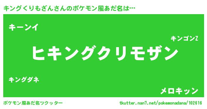 | 男性向けラノベタイトル風あだ名 | 『キングくりもざんの嫁は女の子じゃないと思った?』 |