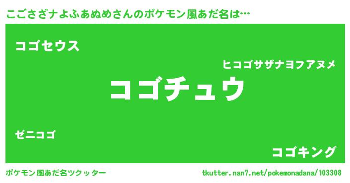 | 男性向けラノベタイトル風あだ名 | 『こごさざナよふあぬめの憂鬱』 |