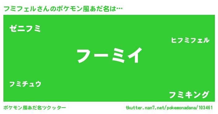 | 男性向けラノベタイトル風あだ名 | 『この素晴らしい世界にフミフェルを!』 |