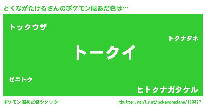 | 男性向けラノベタイトル風あだ名 | 『この素晴らしい世界にとくながたけるを!』 |
