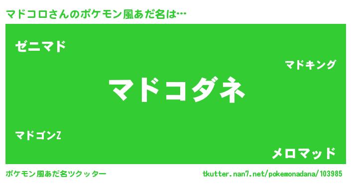 | 女子向けラノベタイトル風あだ名 | 『マドコロの雑貨屋さん』 |