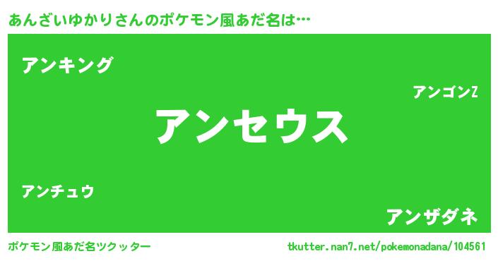 | 男性向けラノベタイトル風あだ名 | 『Re:あんざいゆかりから始める異世界生活』 |