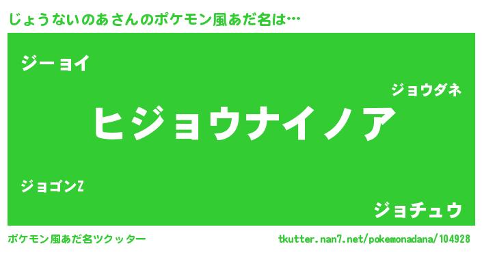| 意味不明あだ名 | 『とにかく怪しいじょうないのあ』 |