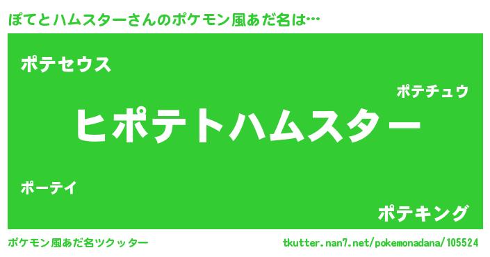 | 男性向けラノベタイトル風あだ名 | 『ぽてとハムスターの嫁は女の子じゃないと思った?』 |