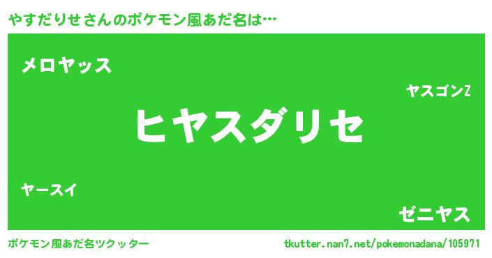 | 女子向けラノベタイトル風あだ名 | 『やすだりせの卵を拾いまして』 |