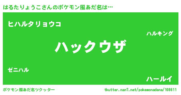 | 男性向けラノベタイトル風あだ名 | 『ノーゲーム・ノーハルタリョウコ』 |
