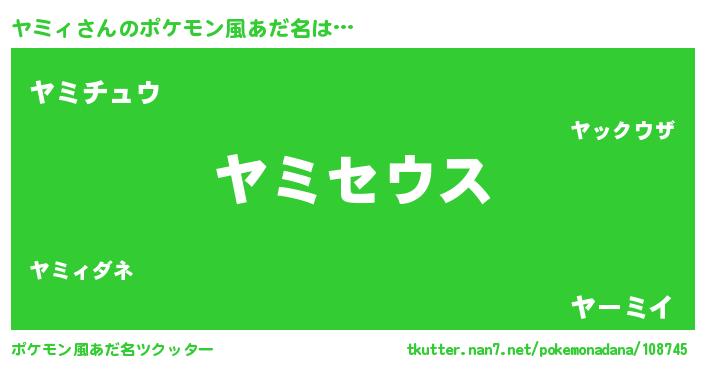 | 男性向けラノベタイトル風あだ名 | 『Re:ヤミィから始める異世界生活』 |