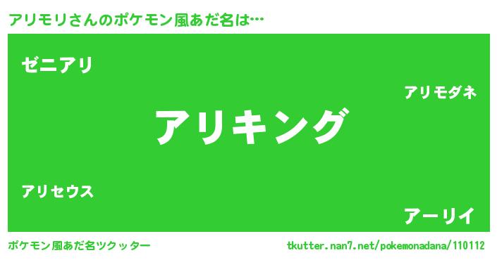 | 欧米人風あだ名 | 『トリンドルアリモリ』 |