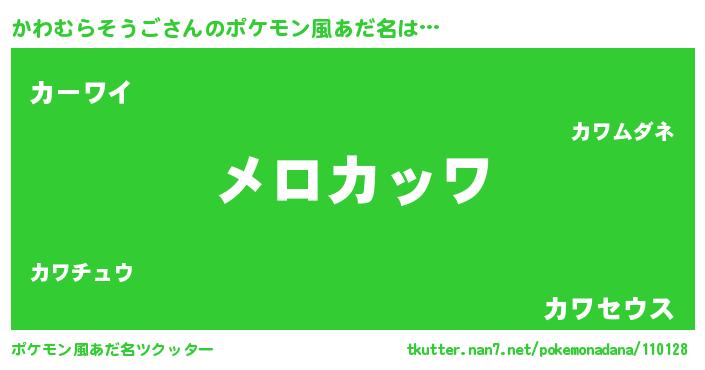 | ヒーロー風カッコイイあだ名 | 『仮面カワダー』『ネオカワムラソウゴ』 |